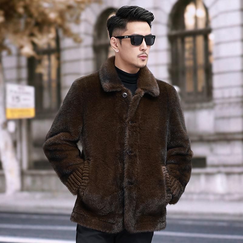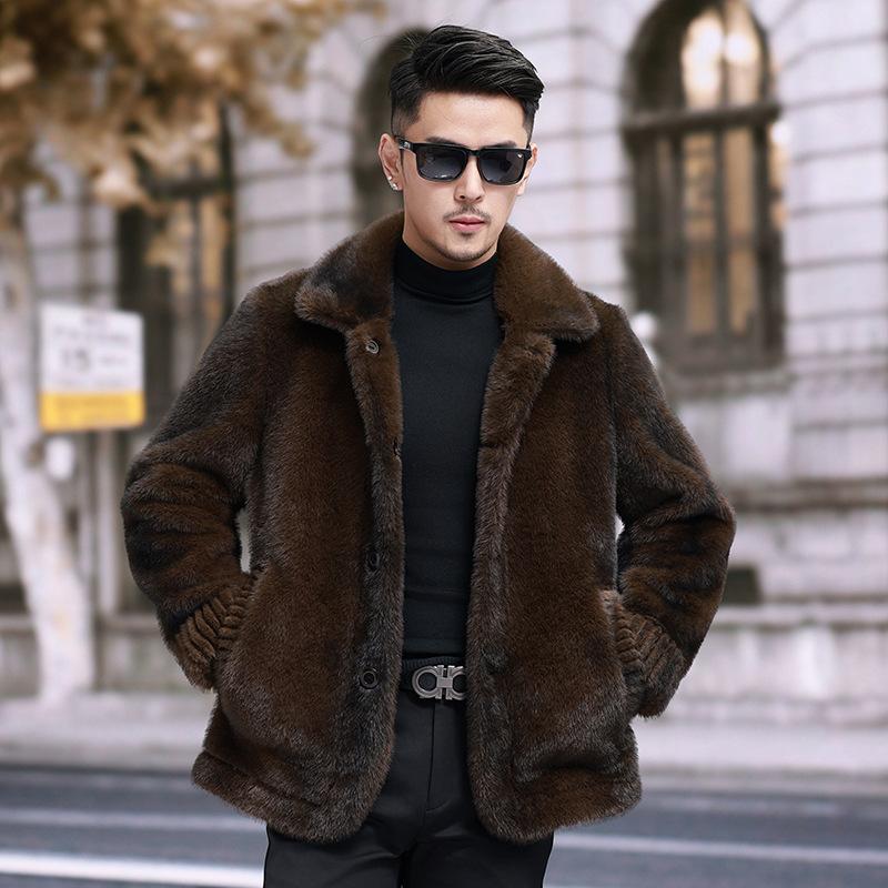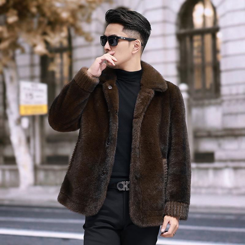Зимняя новая двухсторонняя меховая мужская куртка из золотистой норки, бархатная, композитная, цельная, имитация норки, теплая и утолщенная