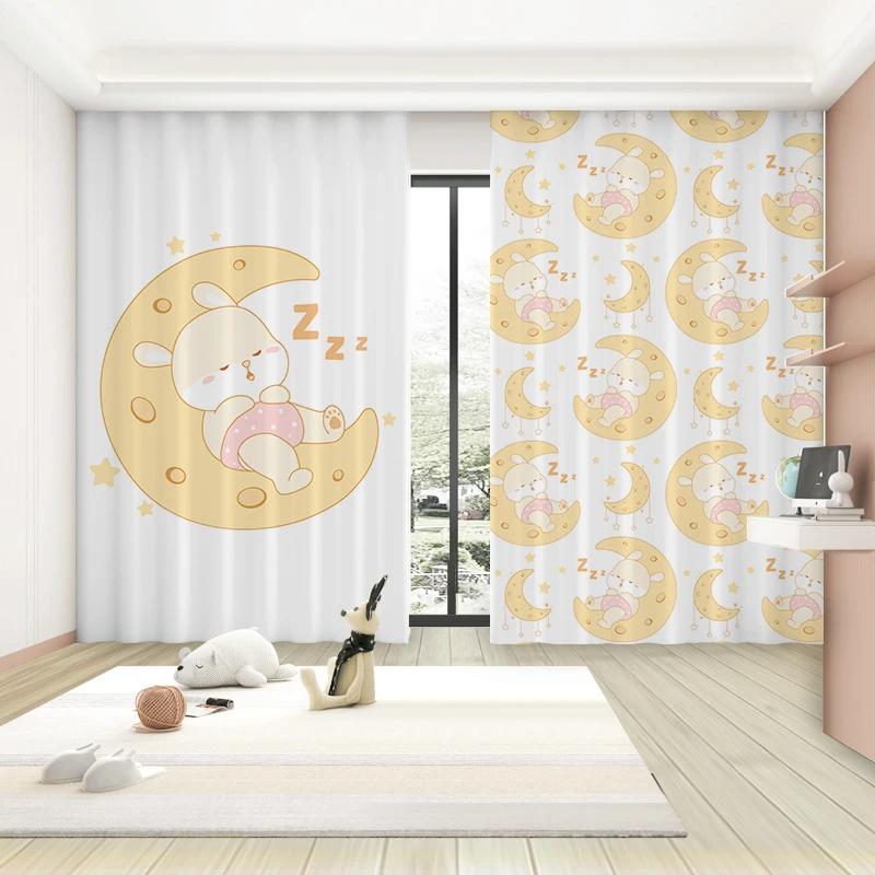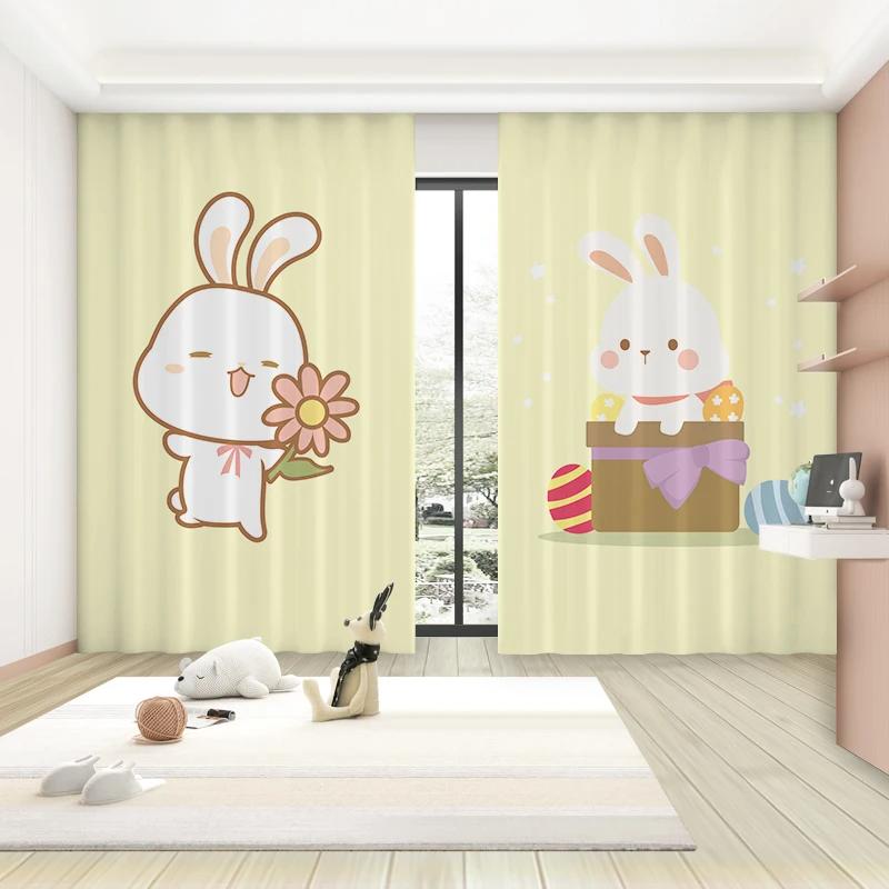 Мультяшный милый кролик узор высокие затемняющие шторы детская комната центр раннего образования детский сад затемняющая драпировка новый стиль