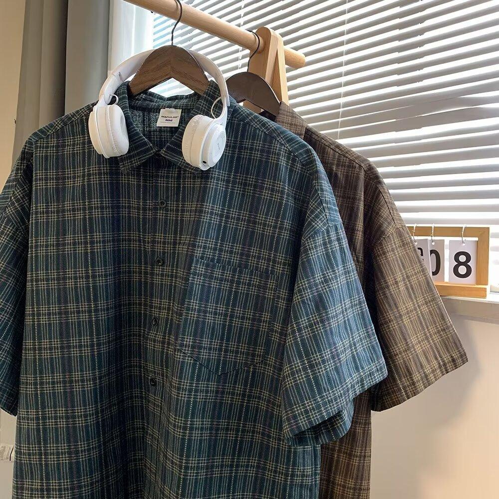 Мужская рубашка с короткими рукавами и буквами в японском стиле Гонконга, свободная рубашка для мужчин и женщин, летняя модная универсальная повседневная куртка