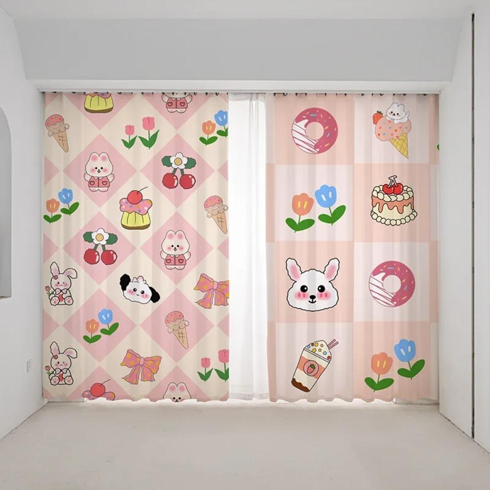 Мультфильм розовый клубника милый кролик щенок котенок принт высокая затемнение занавеска спальня гостиная жалюзи занавеска новый красивый узор