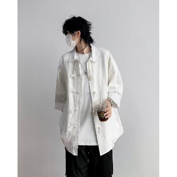 Рубашка с коротким рукавом мужская летняя японская ретро свободная повседневная рубашка с рукавом пять четвертей модная брендовая рубашка куртка — купить товар онлайн с бесплатной доставкой по всему миру!