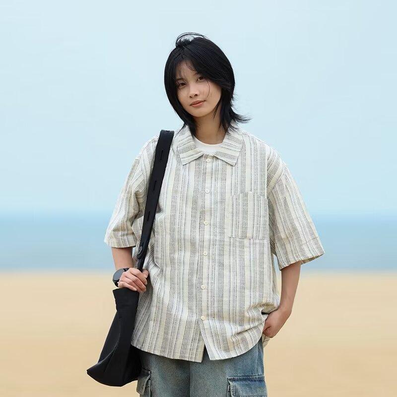 Летняя одежда мужская ретро повседневная рубашка студенческая свободная нишевая дизайнерская забавная новая мужская верхняя часть для ношения на открытом воздухе