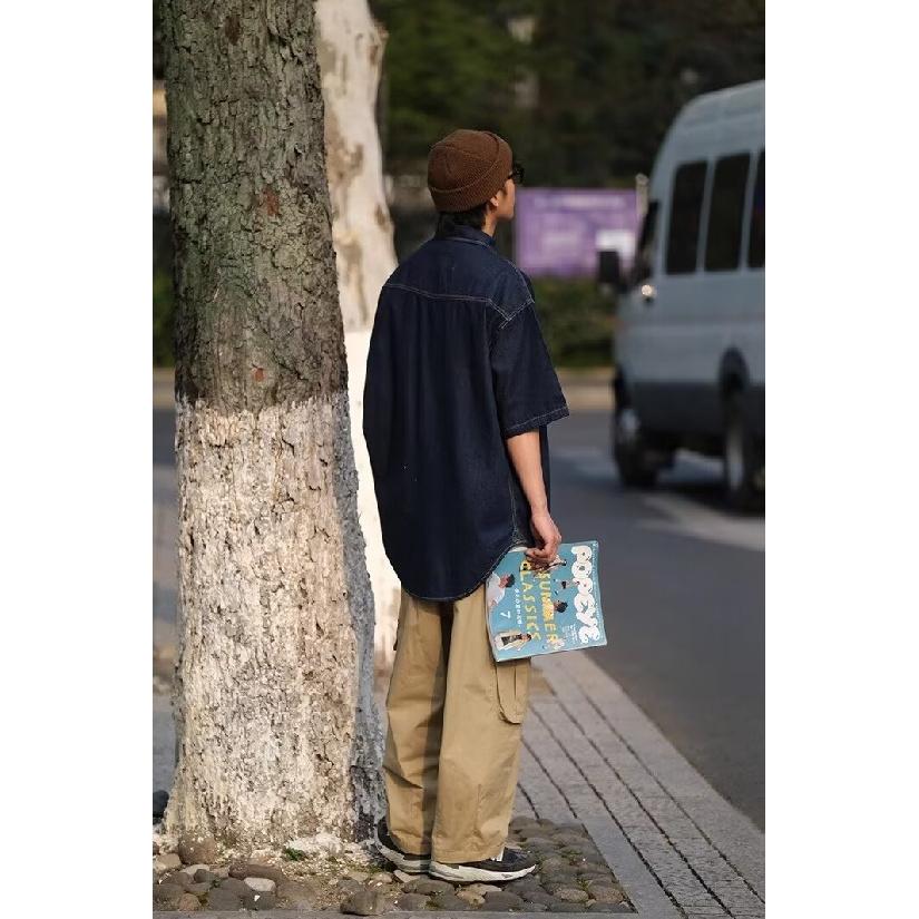 Японский ретро модный бренд летняя свободная джинсовая рубашка с короткими рукавами художественная молодежная рабочая рубашка мужская и женская многослойная куртка