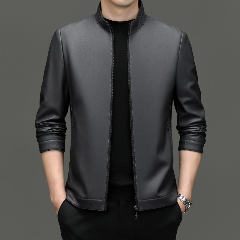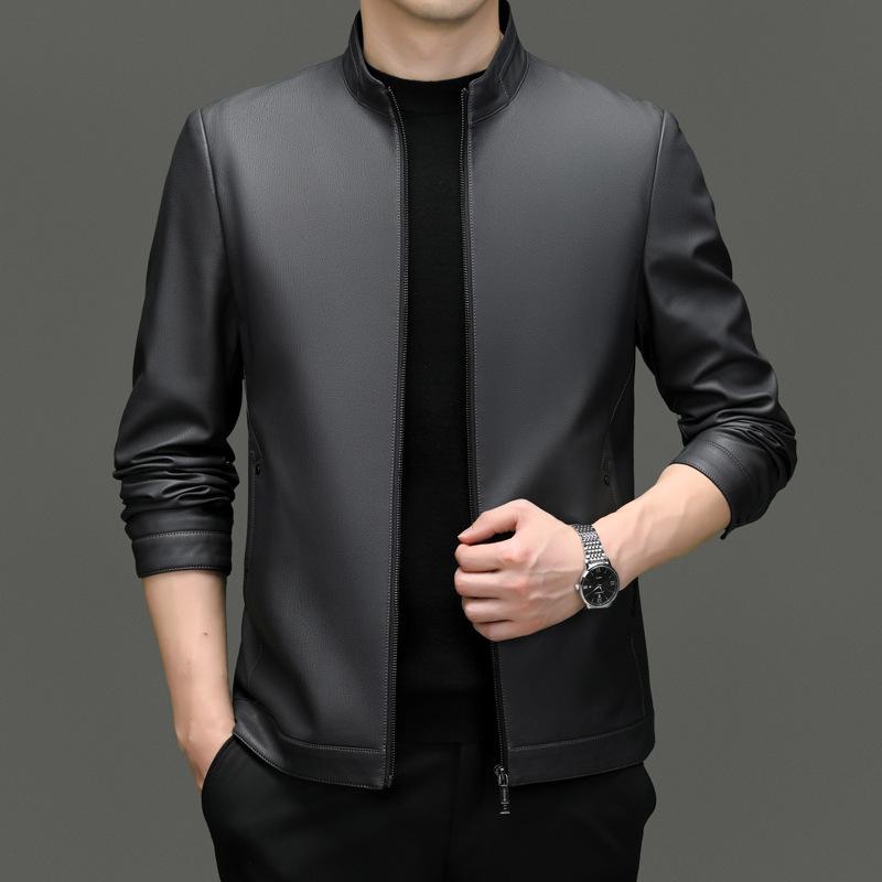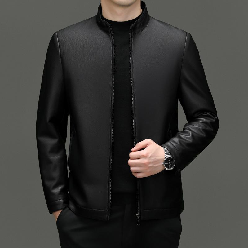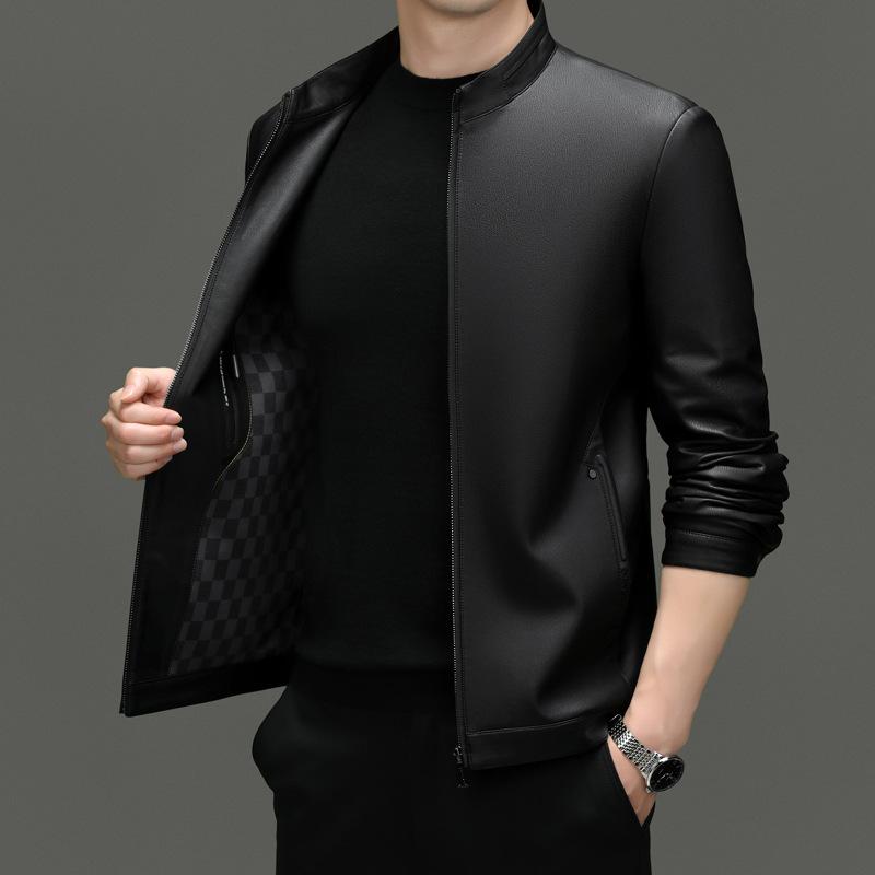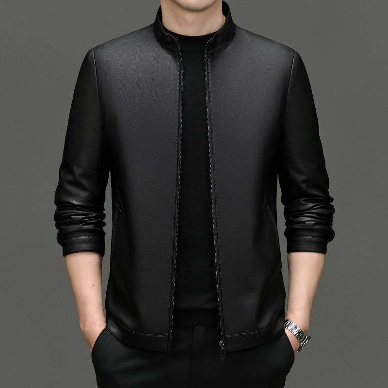 Осенние и зимние куртки из натуральной кожи для мужчин, повседневные куртки из овчины с воротником-стойкой, модные бархатные куртки в мотоциклетном стиле