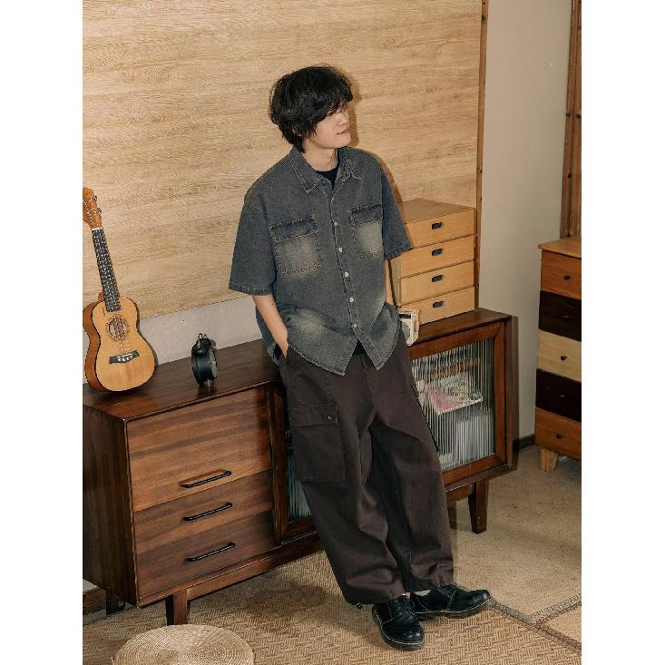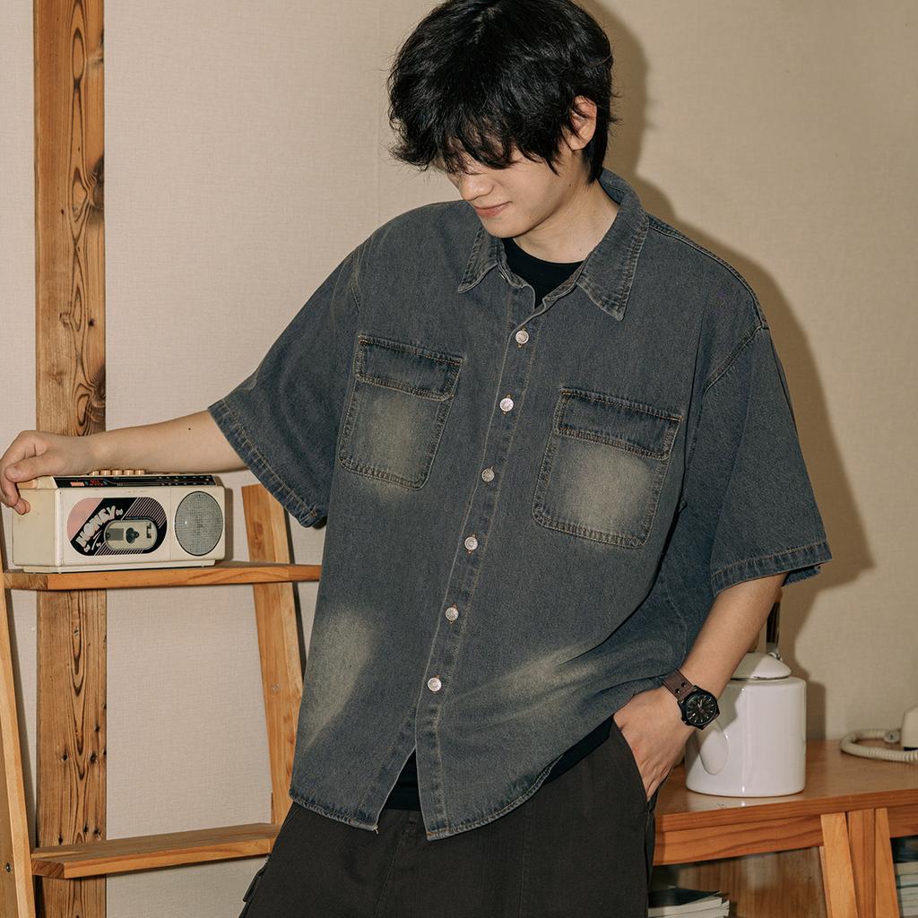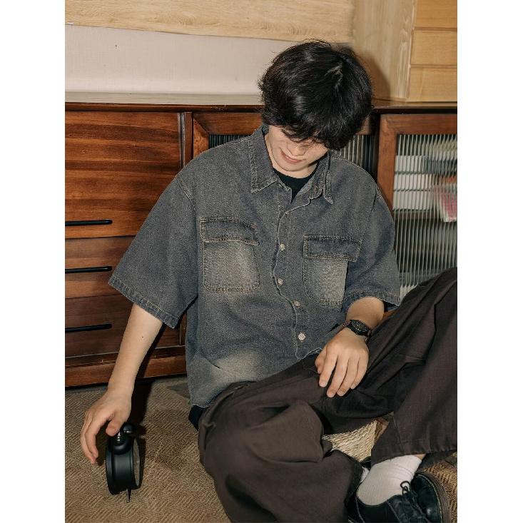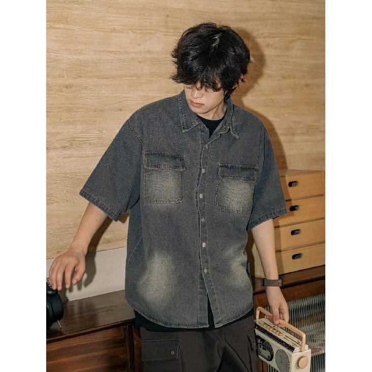 Рубашка с коротким рукавом в стиле ретро из джинсовой ткани, летняя модная мужская и женская марка, японский ретро-тренд с коротким рукавом, классная и свободная рубашка