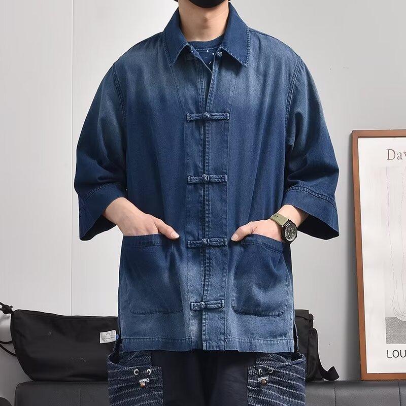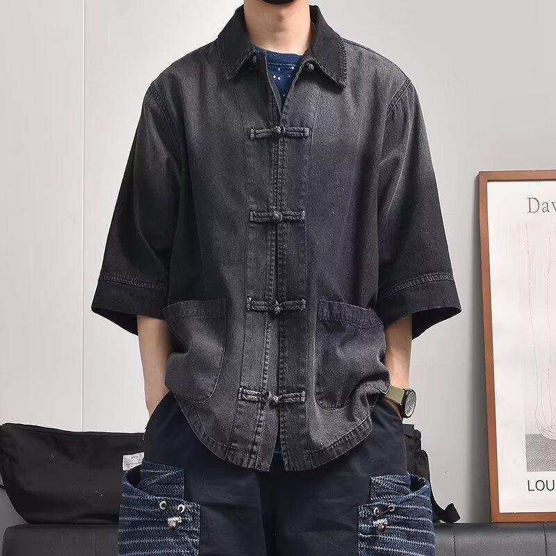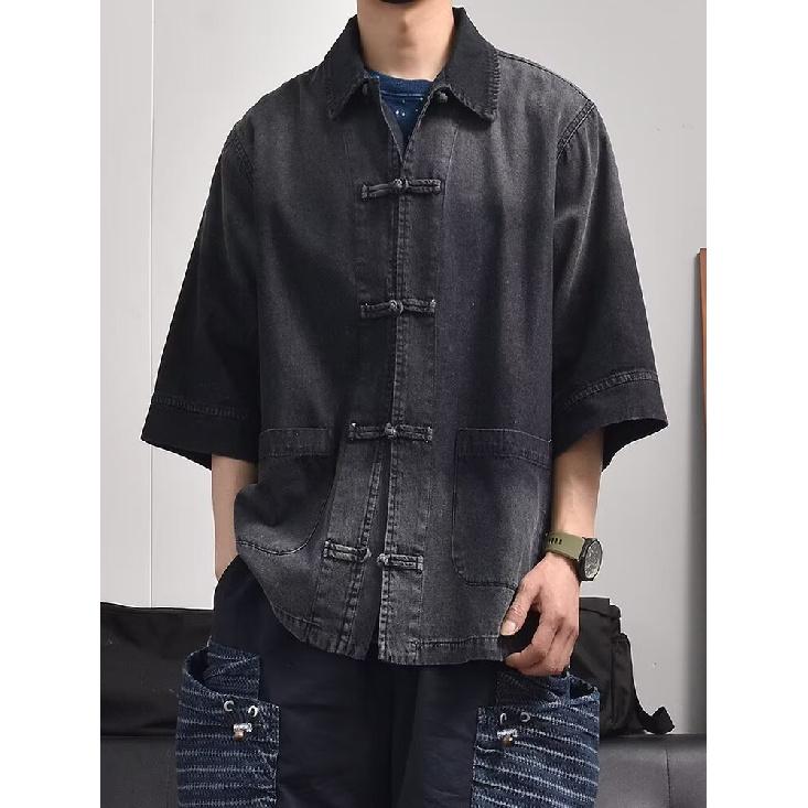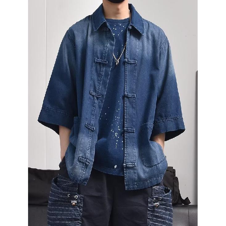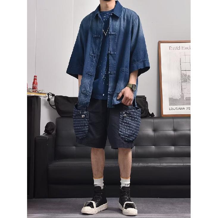 Рубашка с коротким рукавом в стиле ретро из джинсовой ткани, летняя модная мужская и женская марка, японский ретро-тренд с коротким рукавом, классная и свободная рубашка