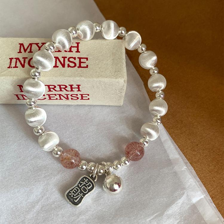 Браслет с предсказанием судьбы из стерлингового серебра S925 с бусиной кошачий глаз и кристаллами клубники, женские украшения в китайском стиле