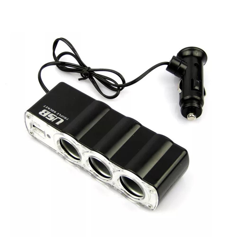 Автомобильный прикуриватель-разветвитель 12 В/24 В автомобильное зарядное устройство с 3 розетками + USB-портом, автомобильный адаптер питания постоянного тока для телефона, GPS, видеорегистратора, аксессуара