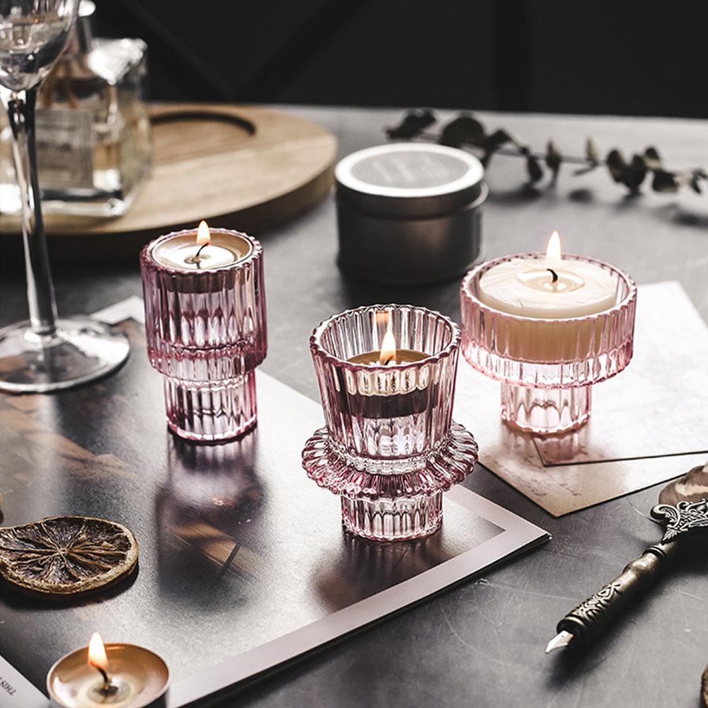 Вертикальные полосы розового стекла домашнего декора подсвечники свадебные украшения аксессуары подсвечники для канделябро центральный элемент