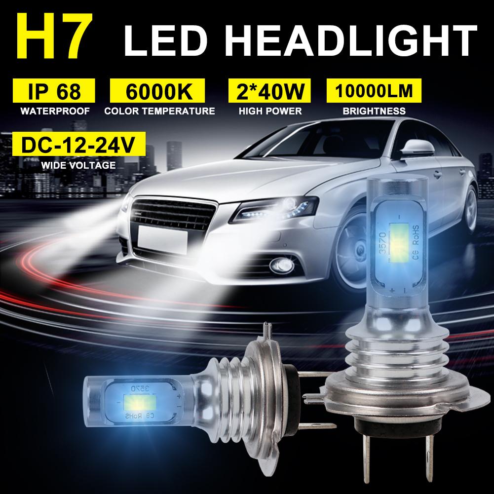 2 шт. светодиодных ламп H7, комплект фар 80 Вт 10000 лм, лампы дальнего или ближнего света 6000 К, белые, IP68, водонепроницаемые, Canbus, лампочки на автомобильные аксессуары