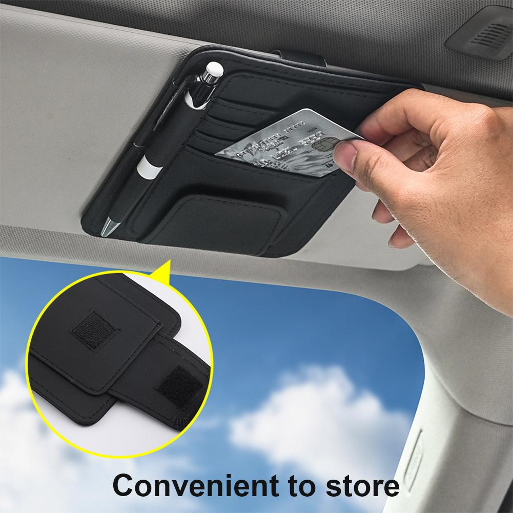 Органайзер для солнцезащитного козырька автомобиля, кожаный держатель для солнцезащитных очков, многофункциональный держатель для карт, карман для хранения, зажим для автомобильных очков, автомобильные аксессуары
