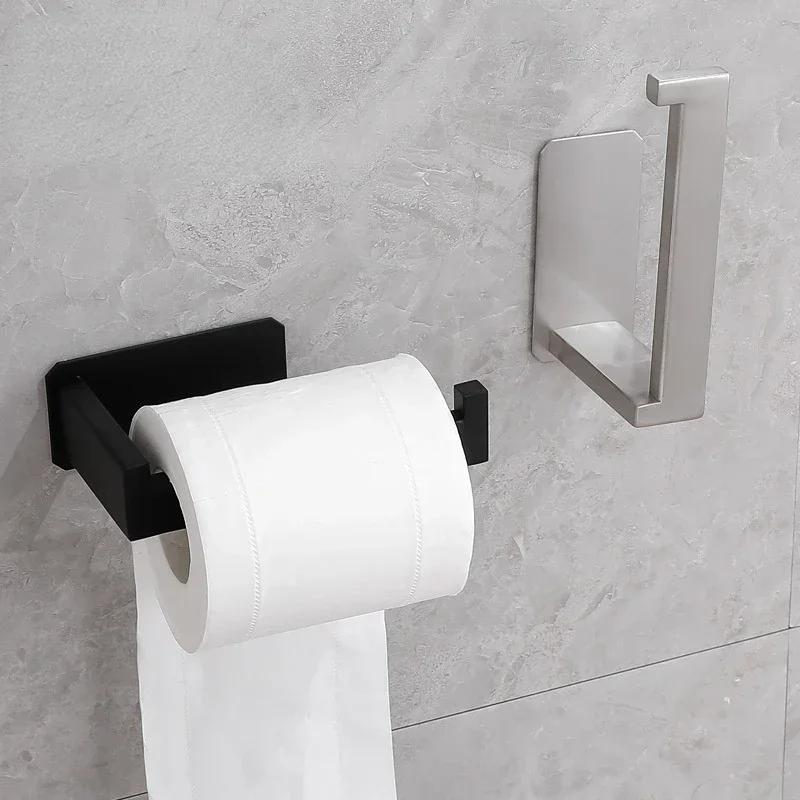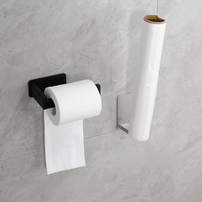 Держатель для туалетной бумаги из нержавеющей стали, самоклеящийся в ванной, держатель для салфеток, черная отделка, простая установка, без винтов