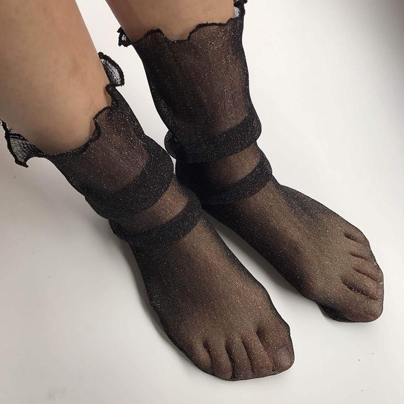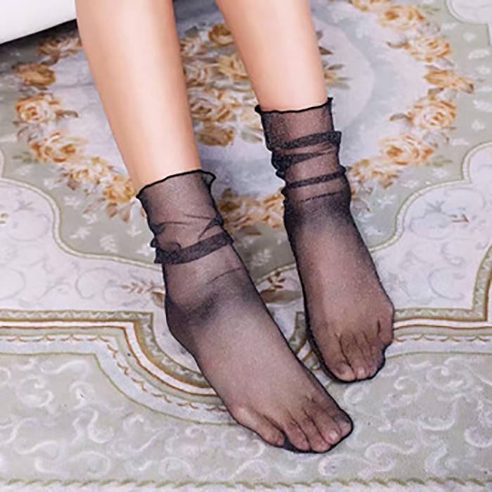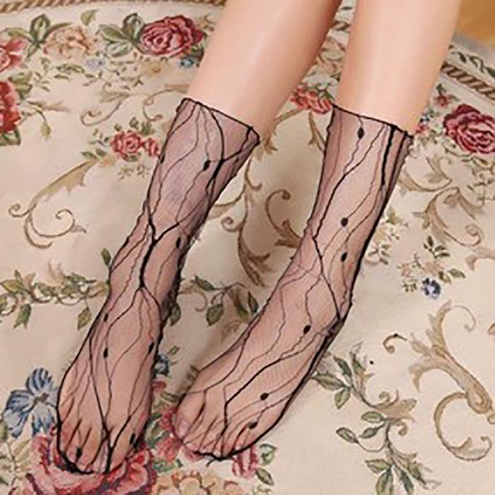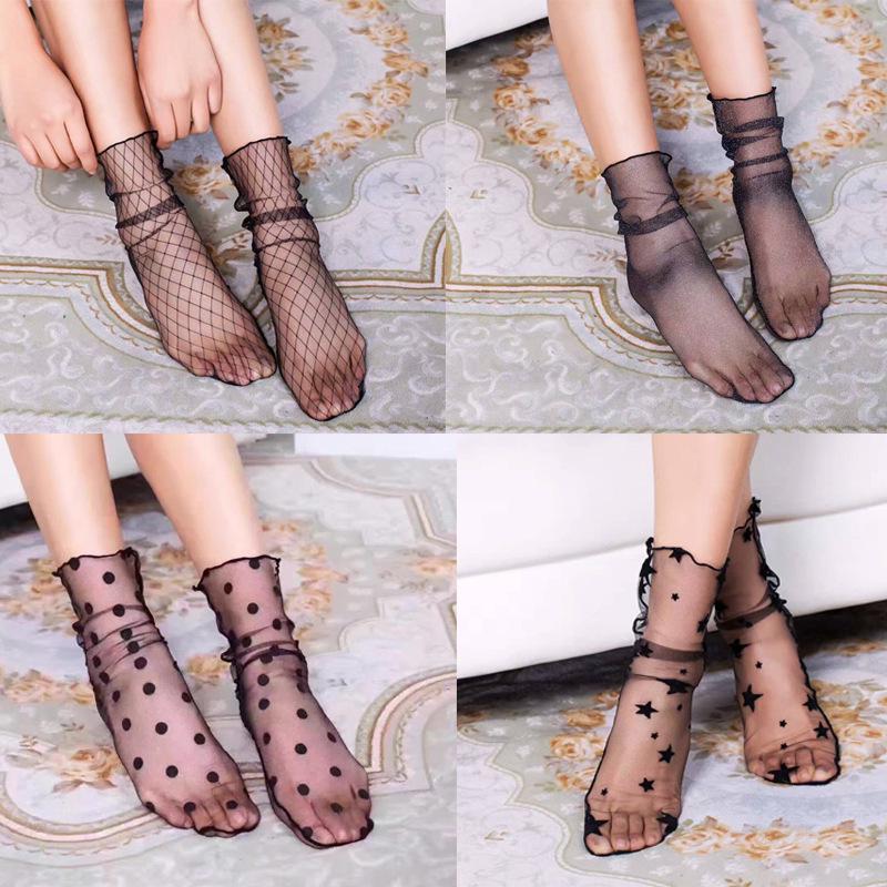 Летние сексуальные кружевные сетчатые носки, эластичные средние чулки, короткие носки, женские, кристальные, ультратонкие, шелковые, стоковые