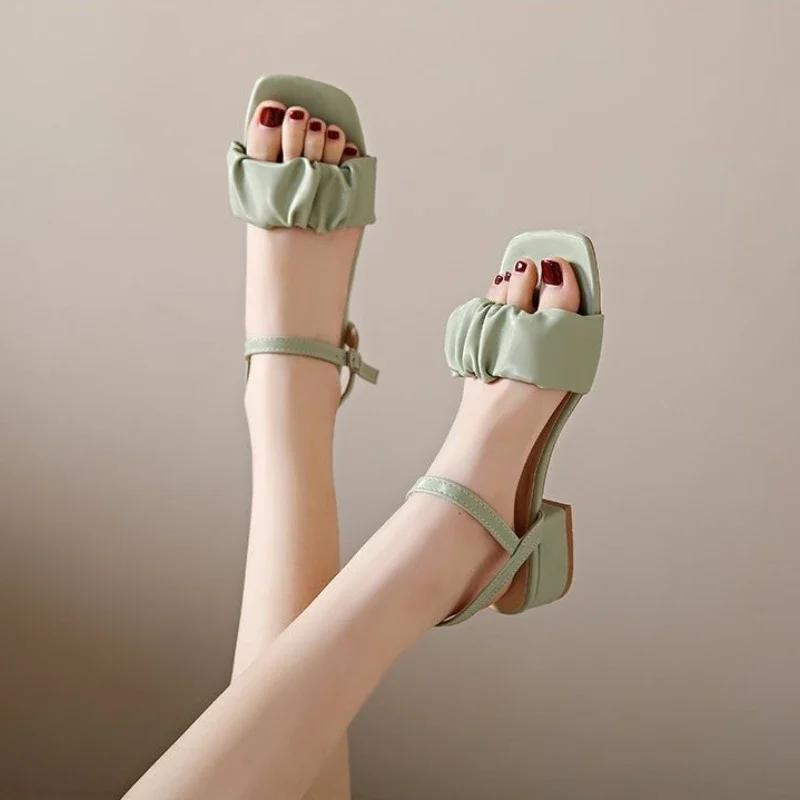 Сандалии женские на высоком каблуке, 2024 ремешки, открытый носок, оборки на низком каблуке, милая мода, носите женскую обувь летом
