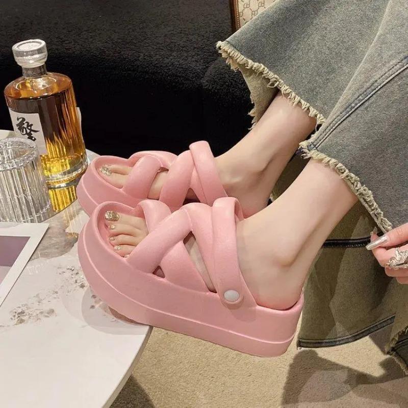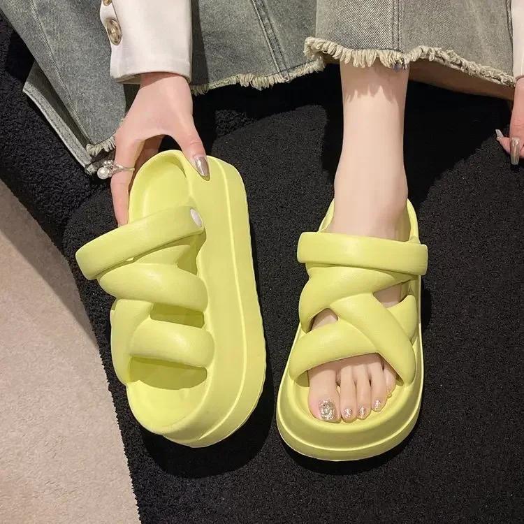 Повседневные босоножки на высоком каблуке EVA для женщин, новинка 2024 года, толстая подошва, высокие кроссовки, пляжная обувь на платформе, роскошные дизайнерские женские сандалии