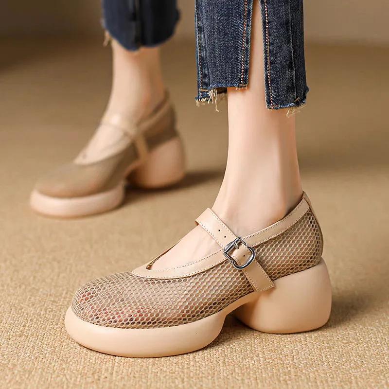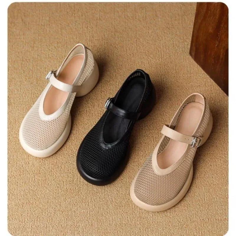 Женские сандалии baotou, римская обувь с толстой подошвой, дышащей сеткой и пряжкой, новая летняя обувь Мэри Джейн