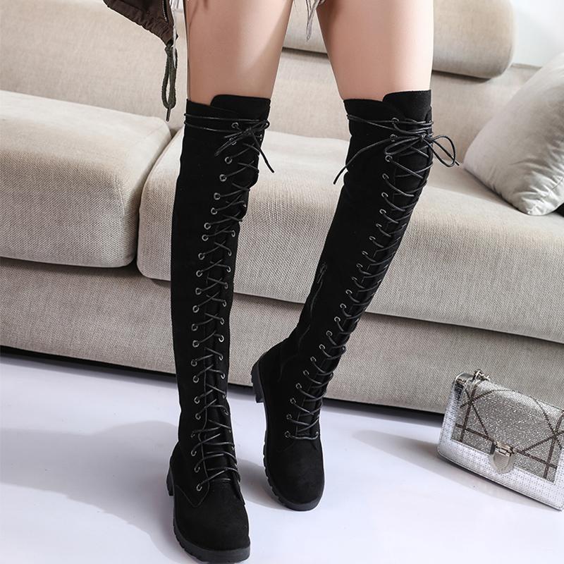 Сексуальные сапоги выше колена на шнуровке женские 2024 осень зима плоские каблуки платформа готические туфли женские длинные сапоги до бедра мода
