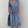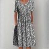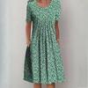 QICED Женская мода лето весна однотонный принт с коротким рукавом и круглым вырезом с высокой талией повседневные платья
