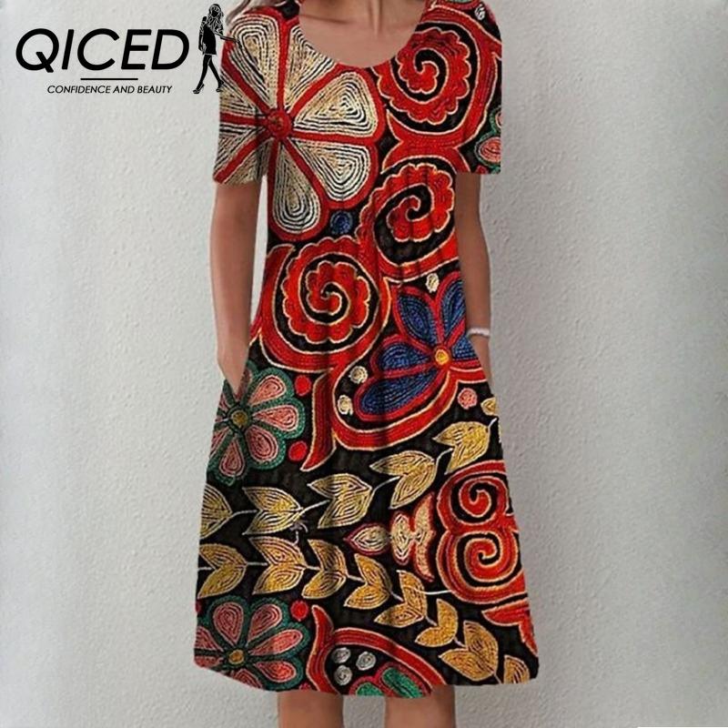 QICED женские модные летние весенние однотонные повседневные платья с коротким рукавом и круглым вырезом с высокой талией и принтом — купить товар онлайн с бесплатной доставкой по всему миру!