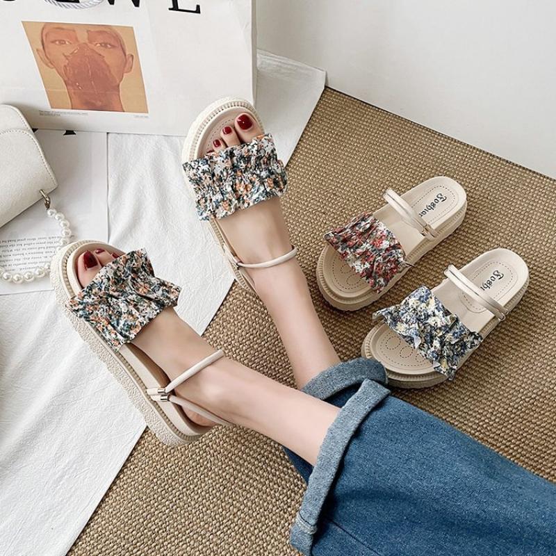 Две сандалии женские летние тапочки 2024 новые модные студенческие туфли на толстой подошве пляжная обувь для женщин женская обувь