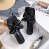 Женские тапочки на плоской подошве с квадратным носком, пляжная обувь на плоской подошве с бантом, красные, черные, белые, модные сандалии, летняя новая женская обувь для улицы 2024 года