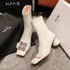 Новые осенне-зимние женские короткие ботинки кристально-белые черные на молнии для вечеринок и работы, ботильоны, теплая обувь, женские ботинки