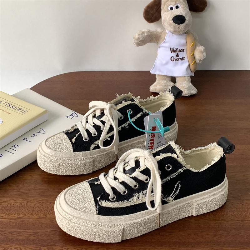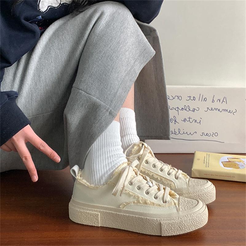 2024 Новые кроссовки Женские парусиновые туфли на платформе Весна Осень Спортивные кроссовки Женские вулканизированные туфли на шнуровке Туфли на плоской подошве для женщин