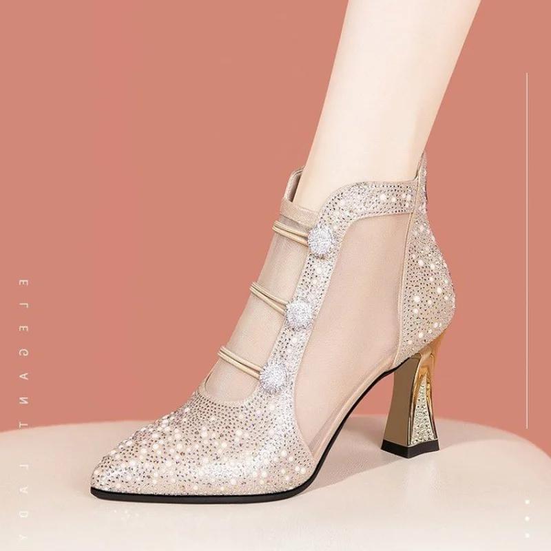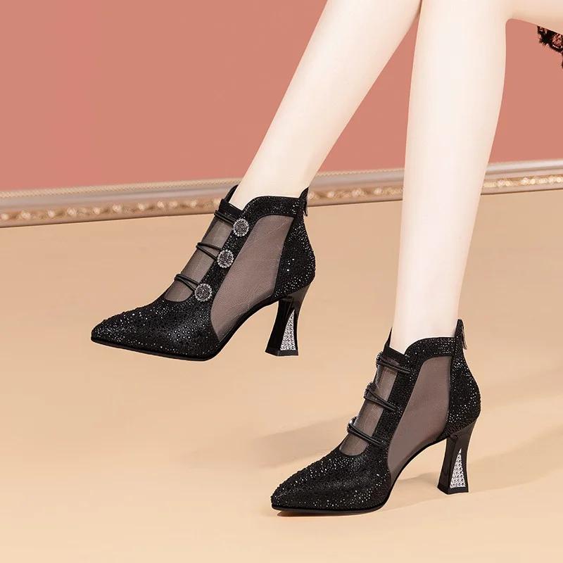 Сандалии Water Diamond HollowToe для женщин на высоком каблукеЖенщины в ботинках с острым носком и дышащей сеткой на толстом каблуке женские сандалии