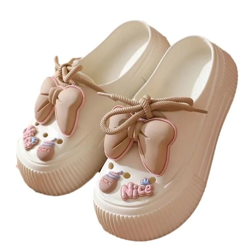 Летние женские туфли с дырочками, симпатичные тапочки с толстой подошвой и бантом, нескользящие женские тапочки Baotou для дома, сада и улицы
