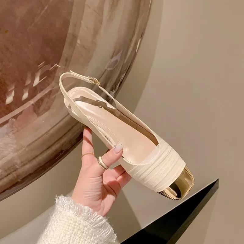 Новые женские свадебные туфли, босоножки с перекрещенными ремешками на щиколотке, золотистые носки, средний каблук, платье, разноцветные босоножки, женские летние туфли