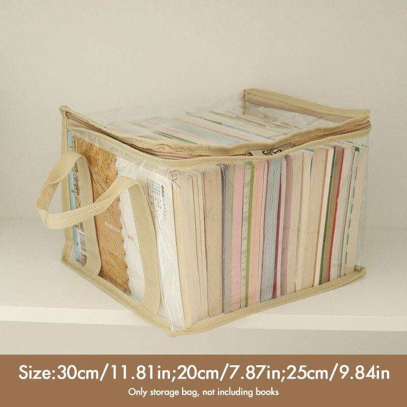 Сумка для хранения книг из ПВХ, прозрачный контейнер для сбора, штабелируемый чехол на молнии, пылезащитный органайзер с большой ручкой, складная сумка