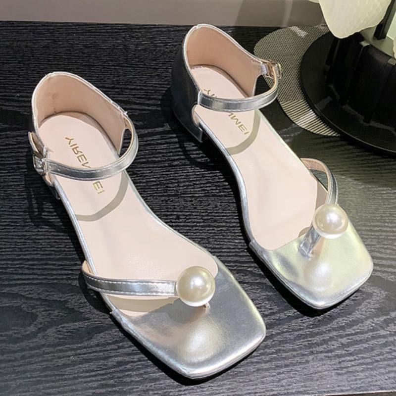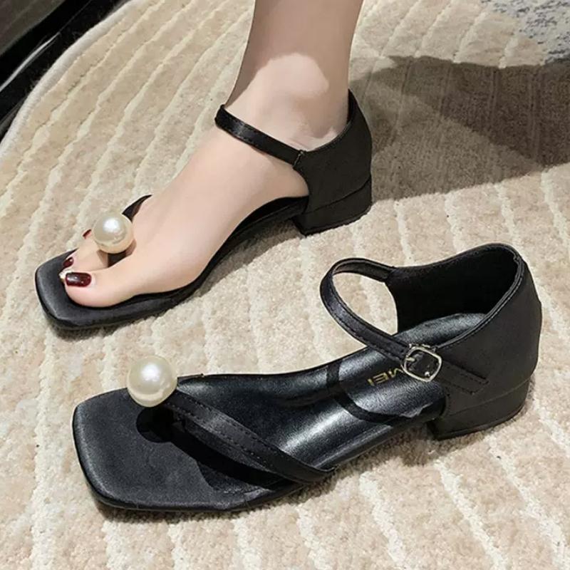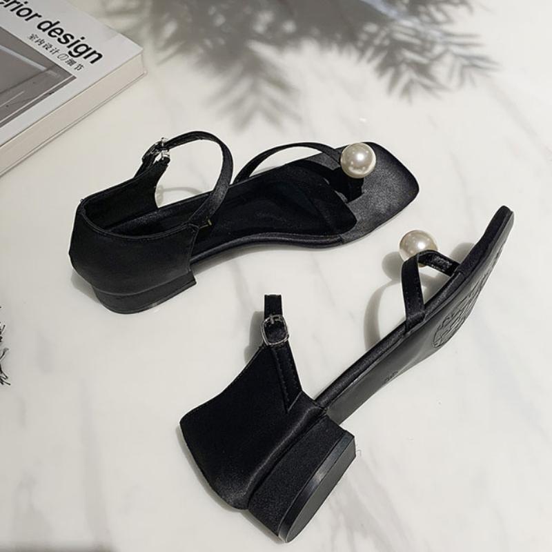 2024 лето новые простые квадратные туфли с жемчужным носком на толстом каблуке модные сексуальные римские женские туфли туфли на высоком каблуке туфли-лодочки