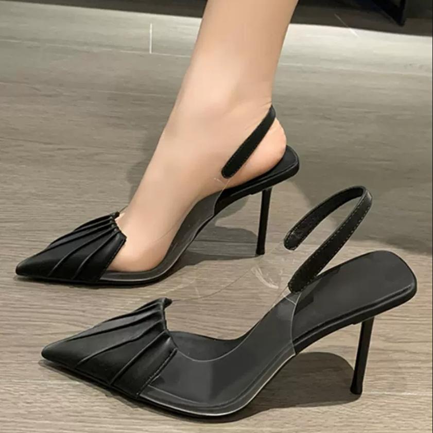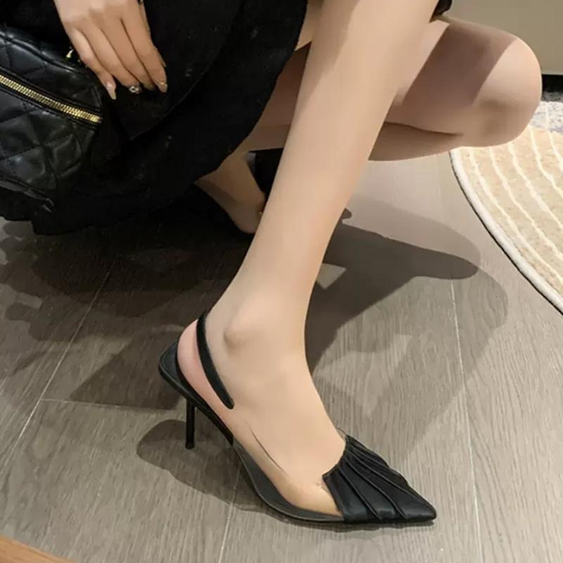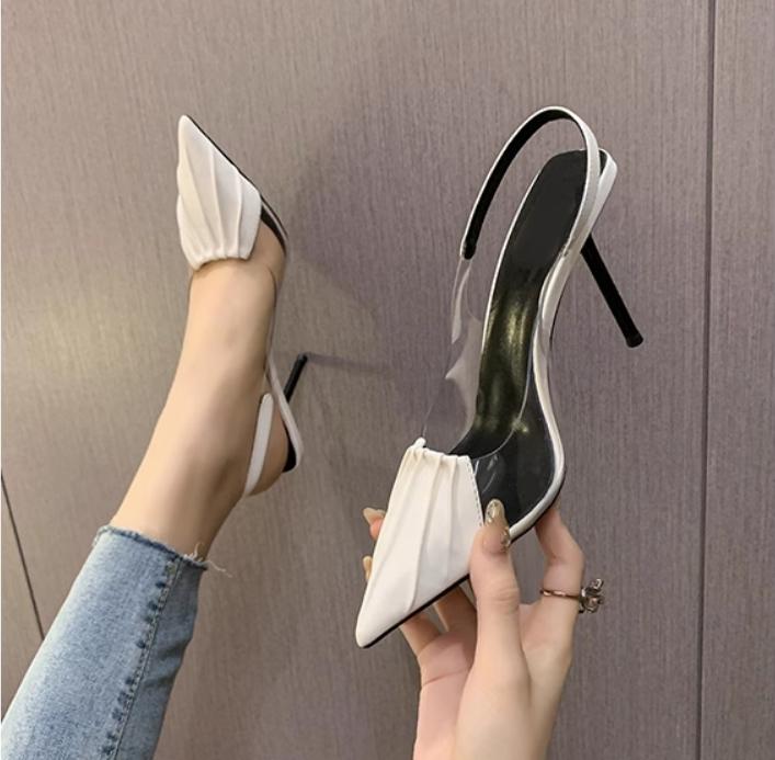 2024 лето новые сексуальные пустые прозрачные туфли на высоком каблуке женские туфли с острым носком французские сандалии туфли-лодочки