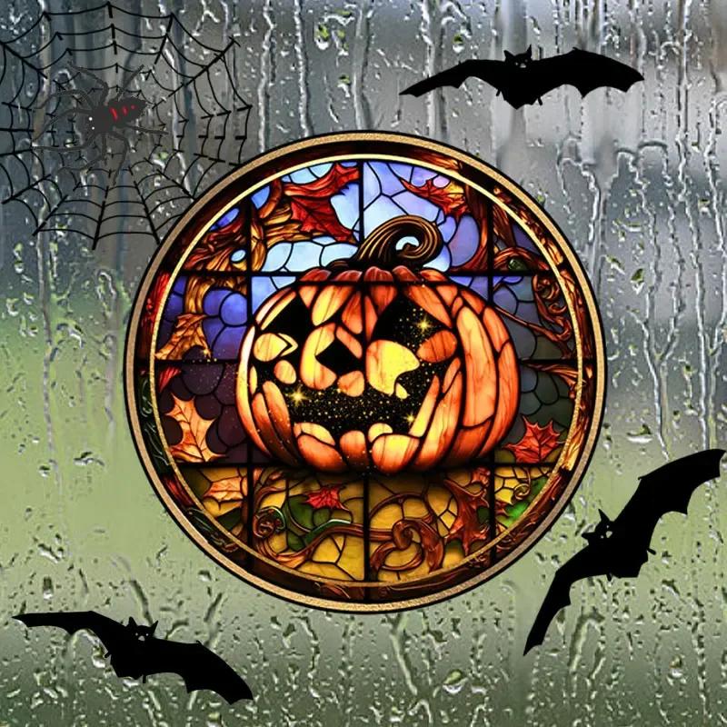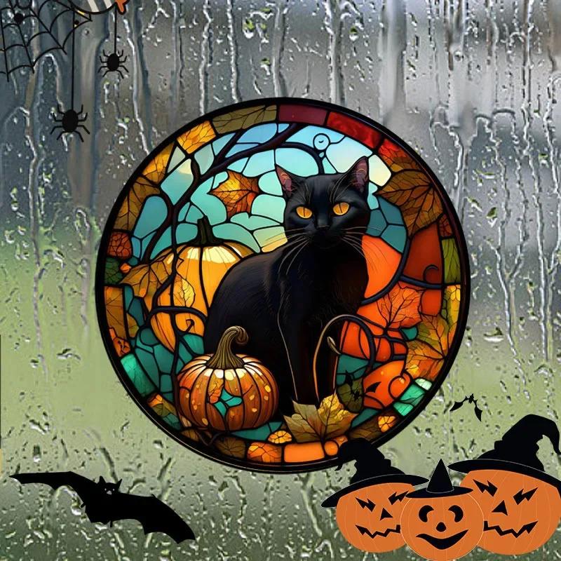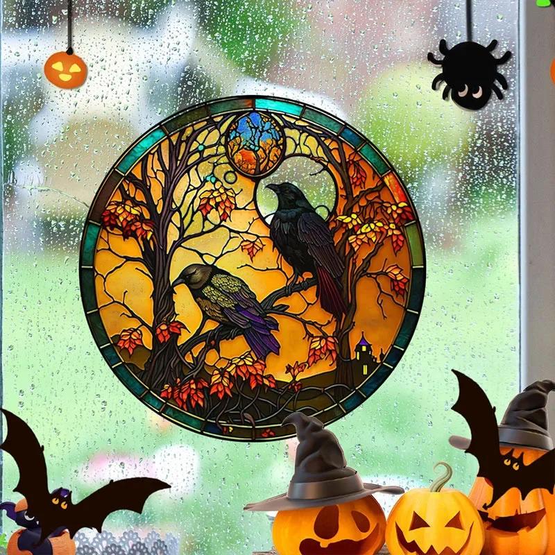 Наклейки на витражное стекло на Хэллоуин, красочные, ужас, замок, кошка, статическая ПВХ-пленка, декоративная, без клея, украшение для дома на вечеринку