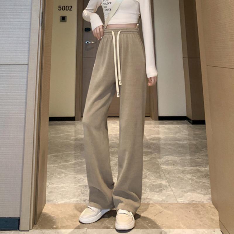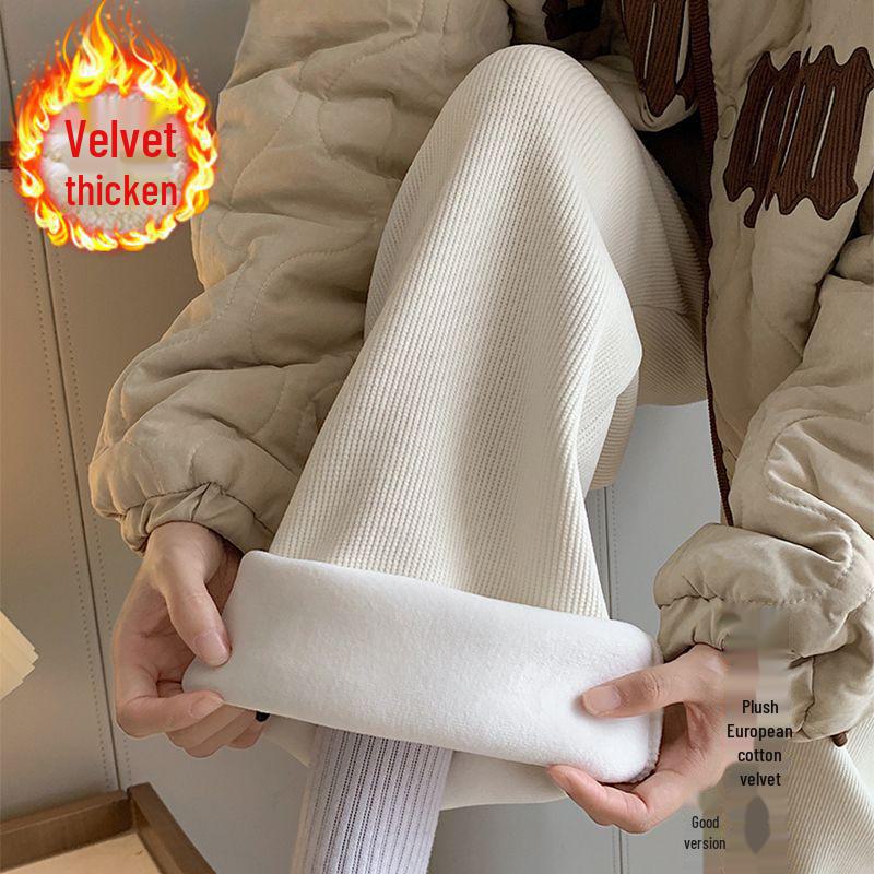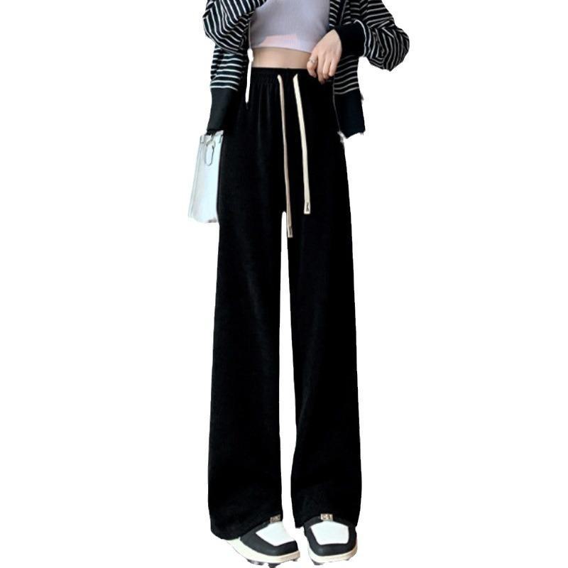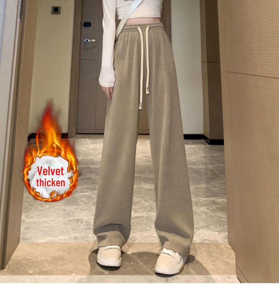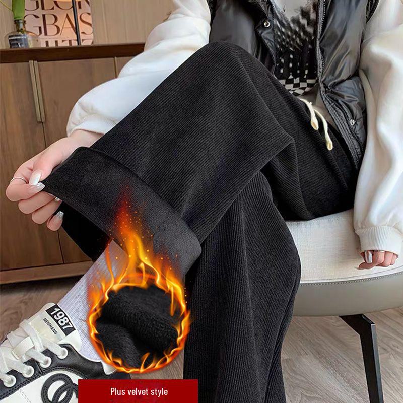 2024 Вельветовые брюки с высокой талией и широкими штанинами: Осень/Зима, облегающий крой с драпировкой, плюс бархат, прямой крой, доступны варианты больших размеров