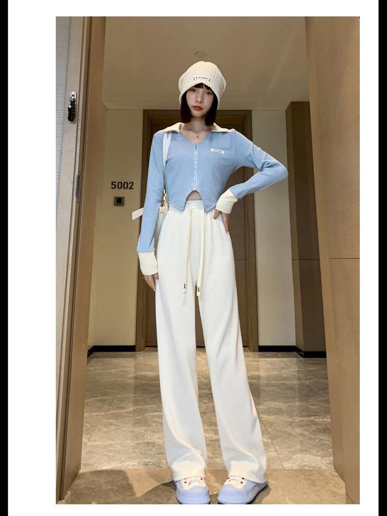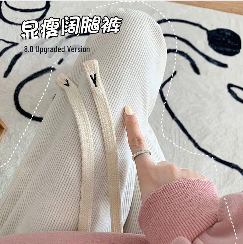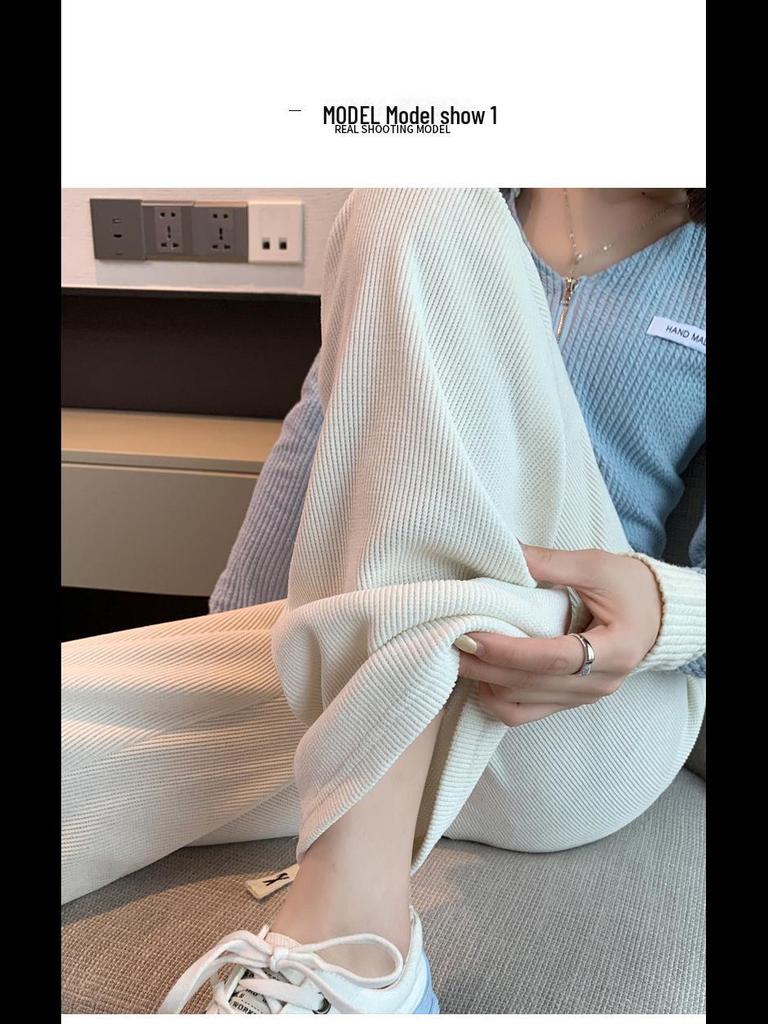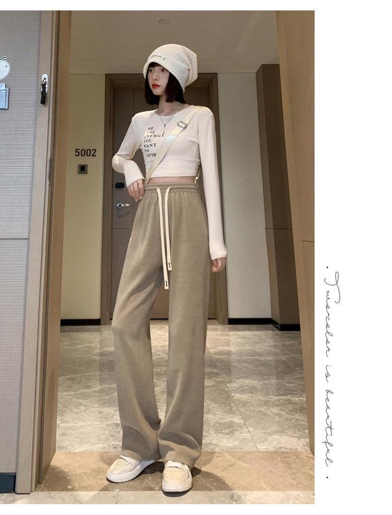 2024 Вельветовые брюки с высокой талией и широкими штанинами: Осень/Зима, облегающий крой с драпировкой, плюс бархат, прямой крой, доступны варианты больших размеров