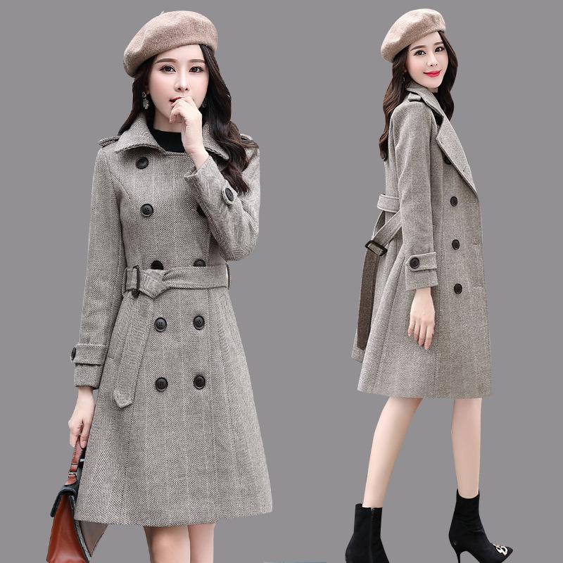 Осенне-зимнее толстое шерстяное женское пальто с узором «елочка» — купить товар онлайн с бесплатной доставкой по всему миру!