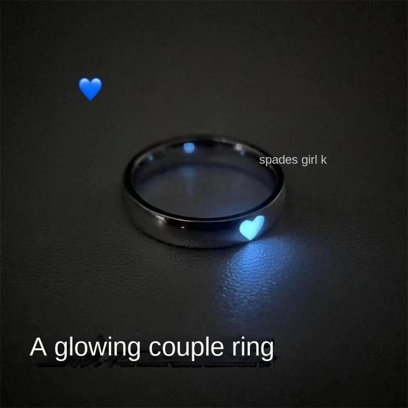Светящееся кольцо для пары, модное синее розовое кольцо в форме сердца для женщин и мужчин, регулируемое кольцо