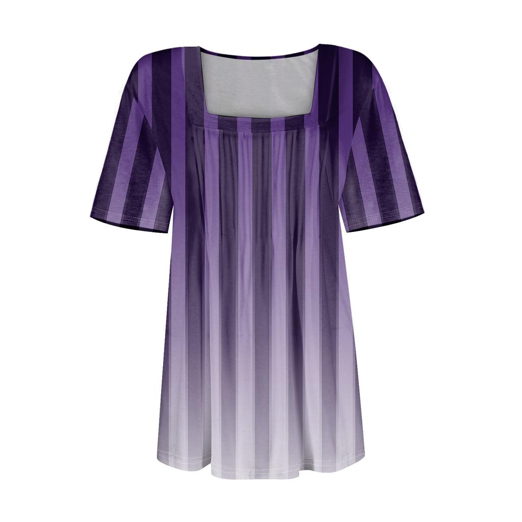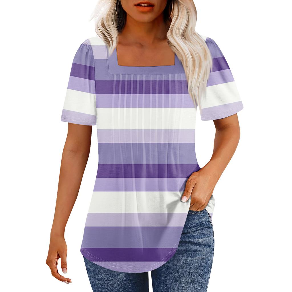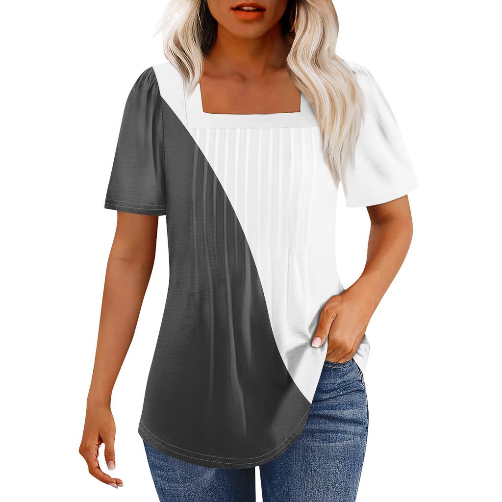 Футболки для женщин, плиссированные, с квадратным вырезом, нарядные, повседневные, блузки с принтом, с коротким рукавом, летние топы свободного кроя