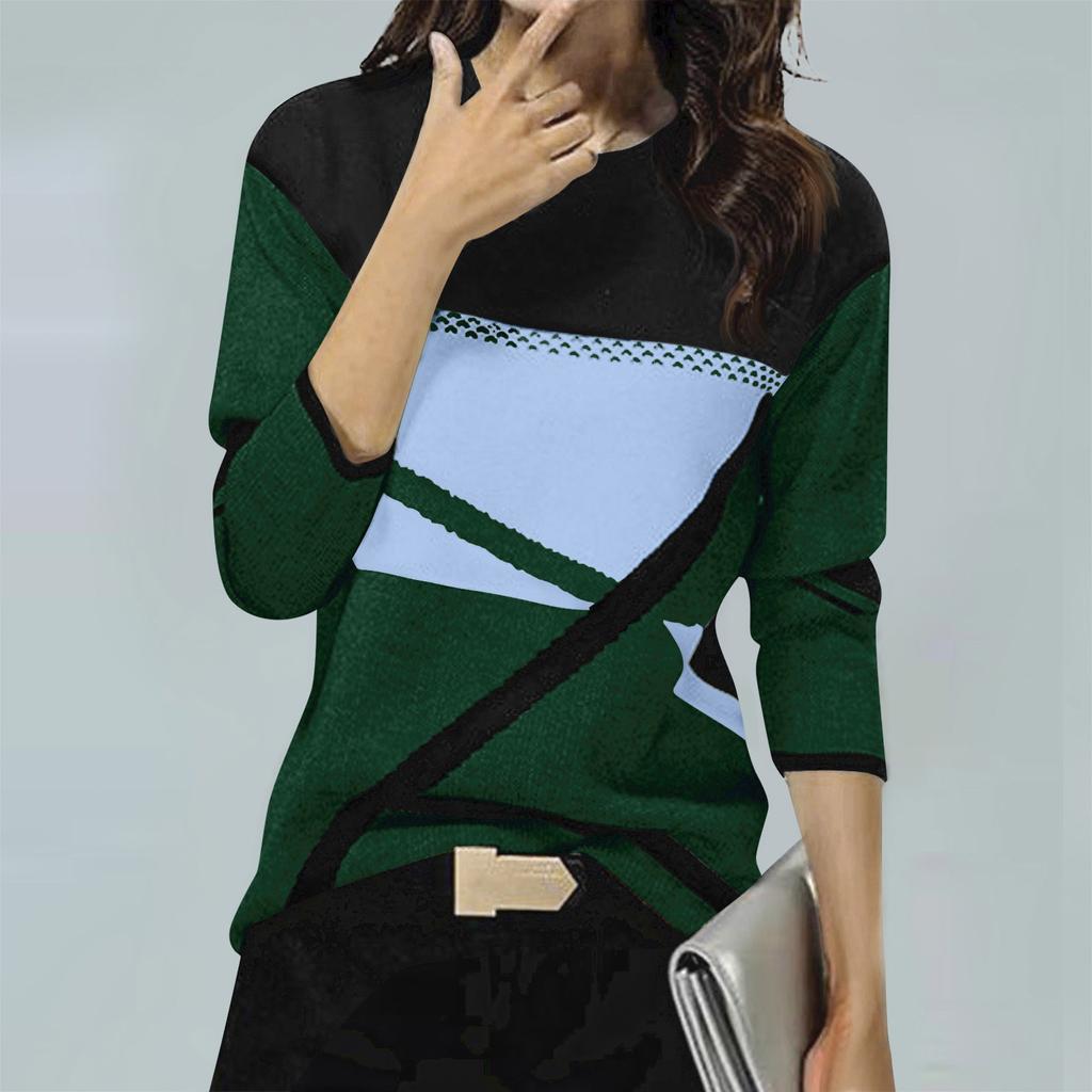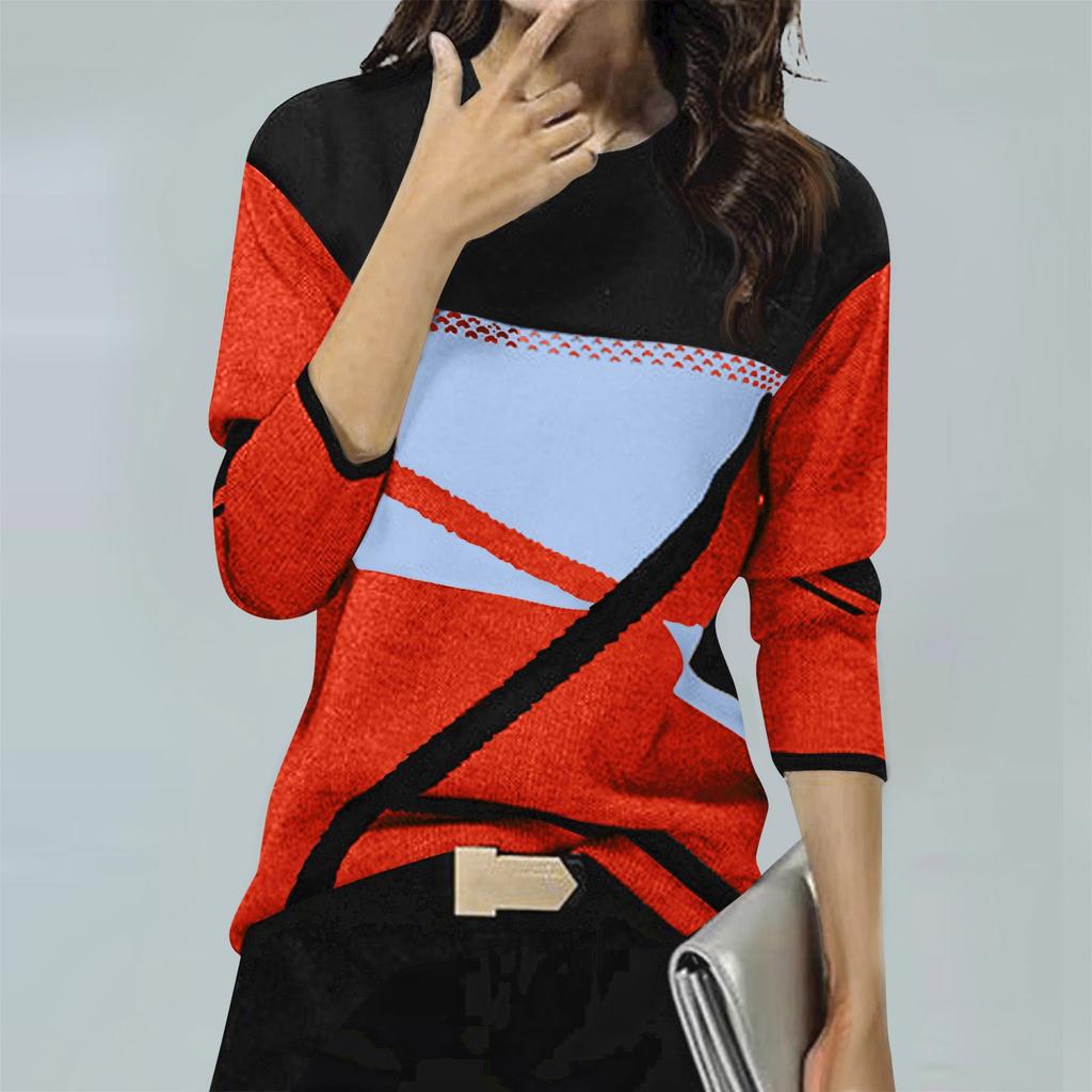 Женская зимняя мода с контрастным позиционированием и принтом с круглым вырезом и длинными рукавами