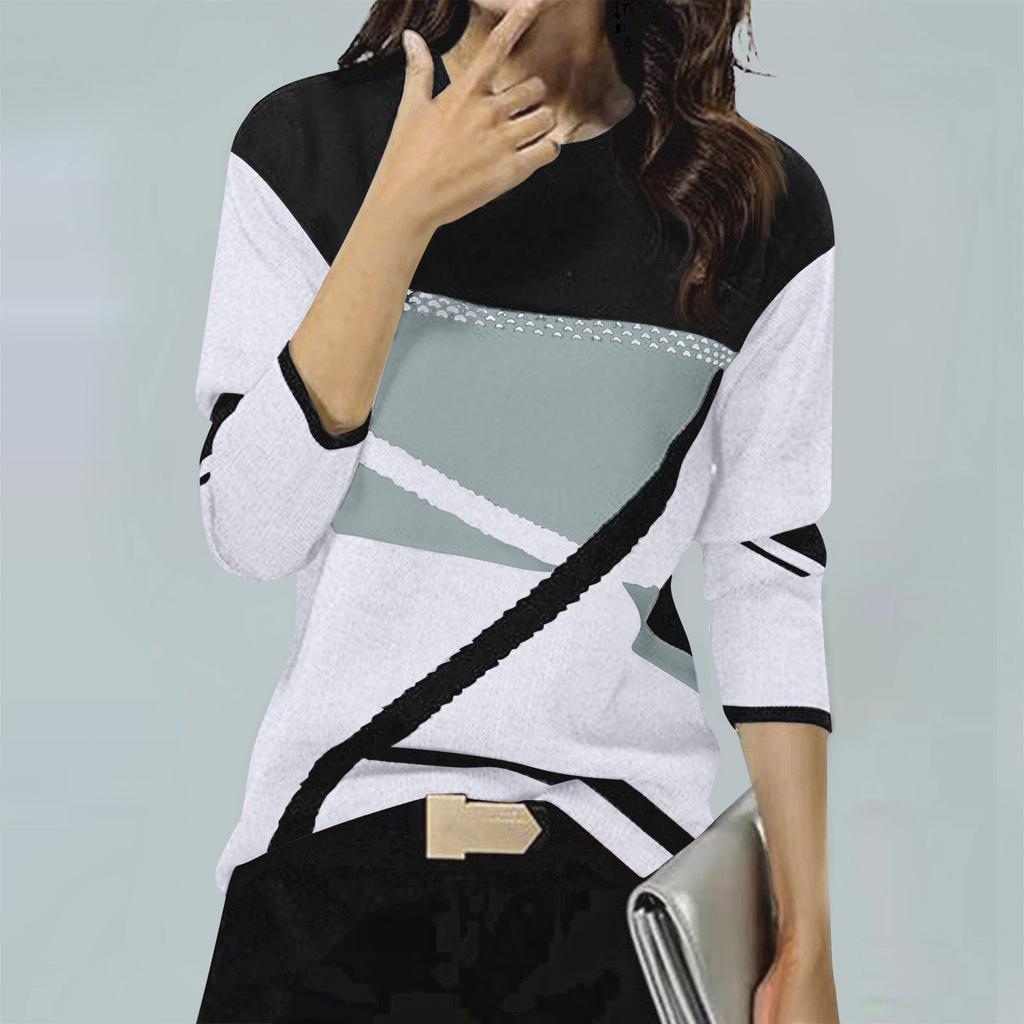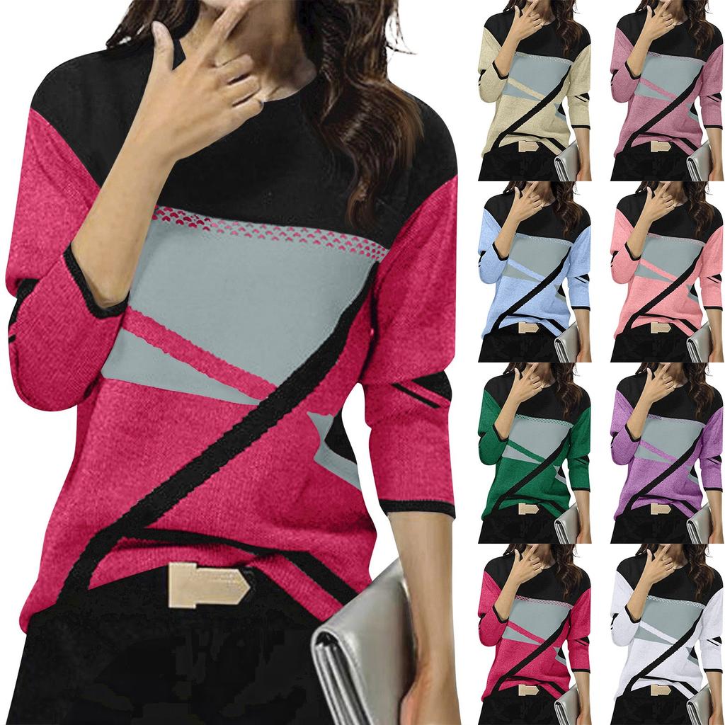 Женская зимняя мода с контрастным позиционированием и принтом с круглым вырезом и длинными рукавами