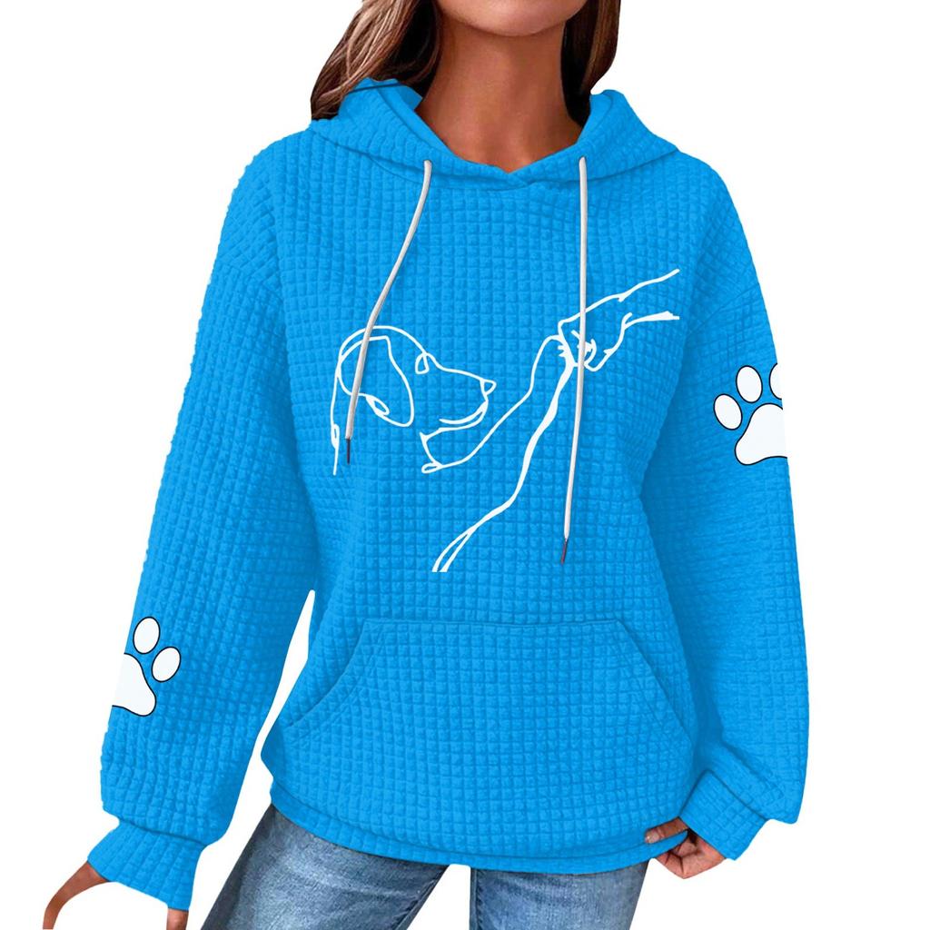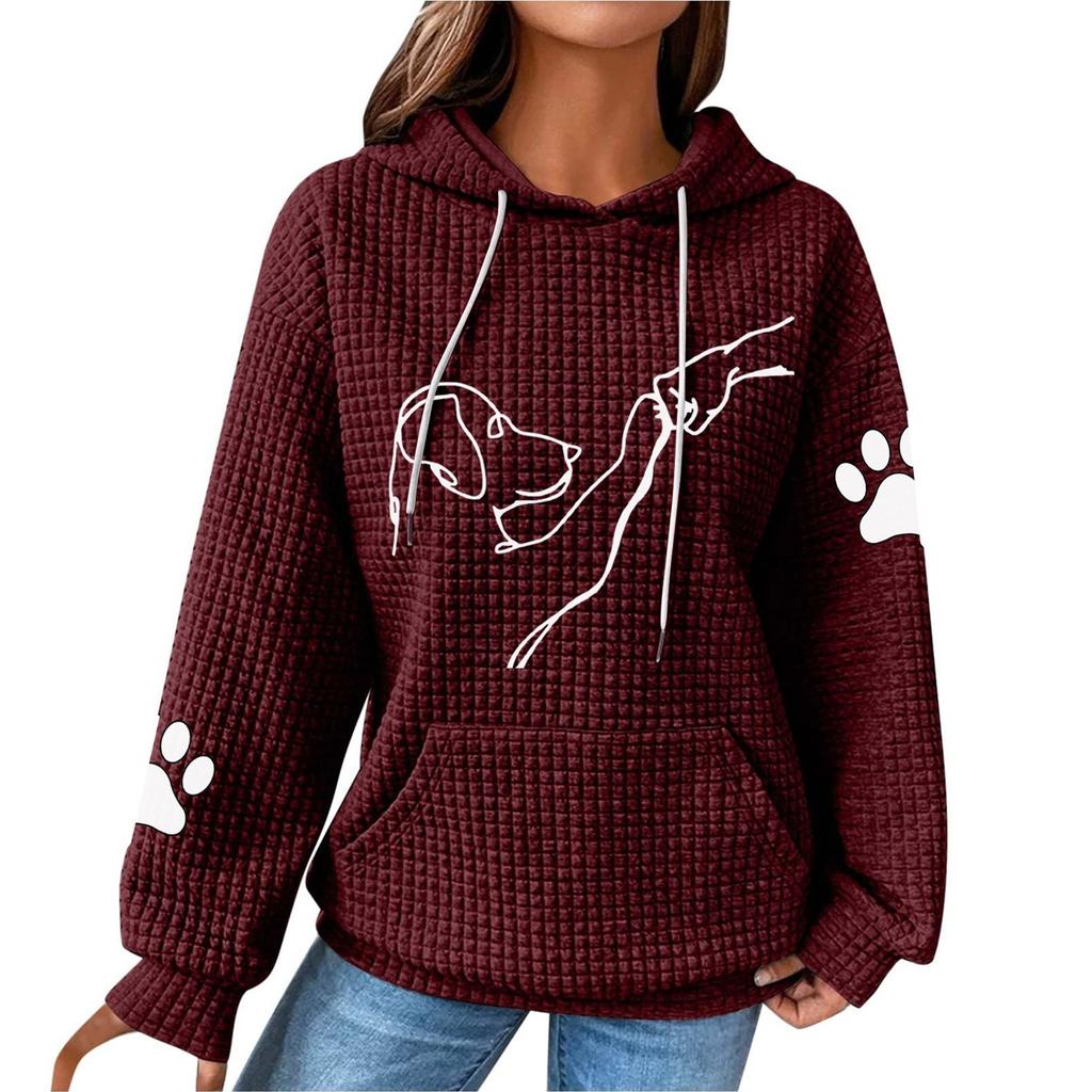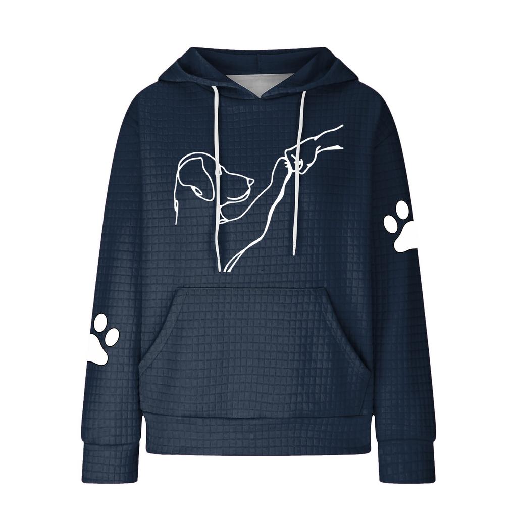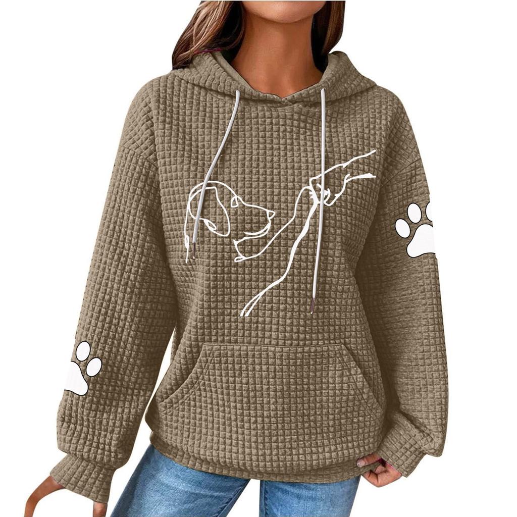 Женская мода свободный джемпер с капюшоном и принтом собаки с длинным рукавом в клетку с капюшоном