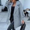 Женское свободное повседневное шерстяное пальто с воротником из однотонного костюма, модное пальто с длинными рукавами