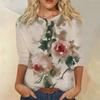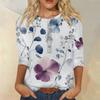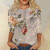 Женская мода повседневная 3/4 рукава цветочный принт пуловер круглый вырез топ повседневная одежда