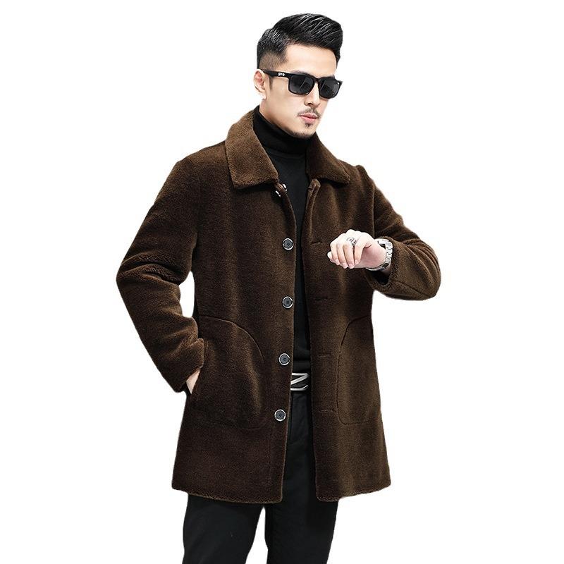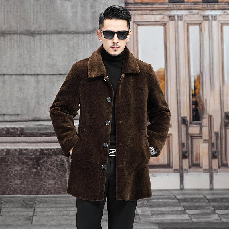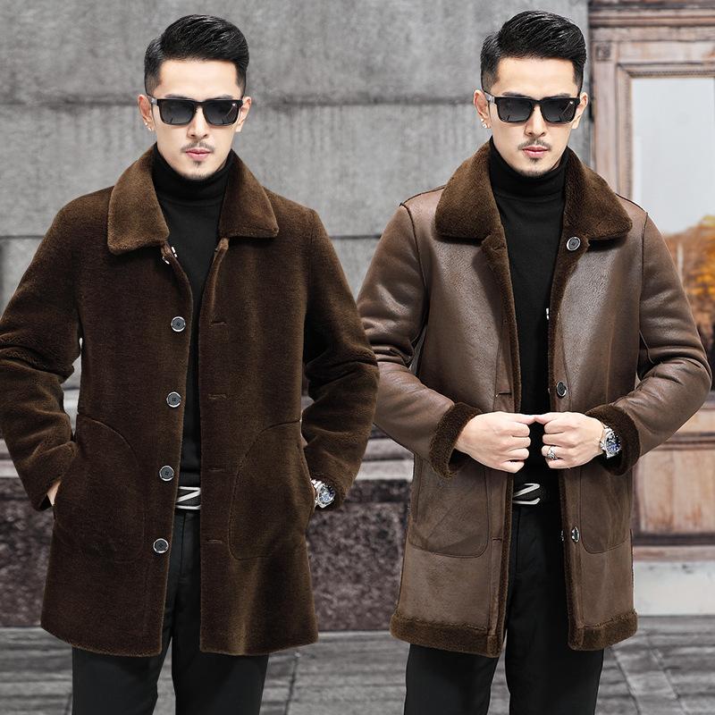 Новая меховая цельная мужская шуба из натурального меха стриженой овчины средней длины с отворотом двухсторонняя овечья шерсть зимняя толстая