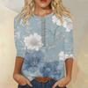 Женская мода повседневная 3/4 рукава цветочный принт пуловер круглый вырез топ повседневная одежда