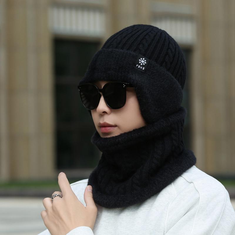 Двухкомпонентная шерстяная шапка мужская зимняя утепленная флисовая вязаная шапка для верховой езды ветрозащитная теплая шапка шарф костюм