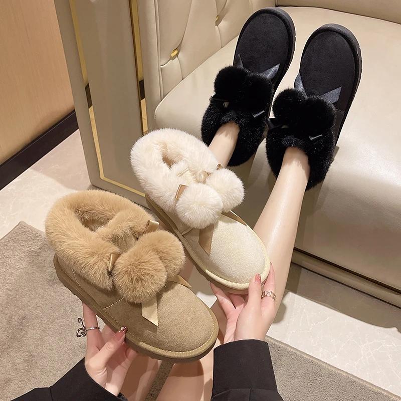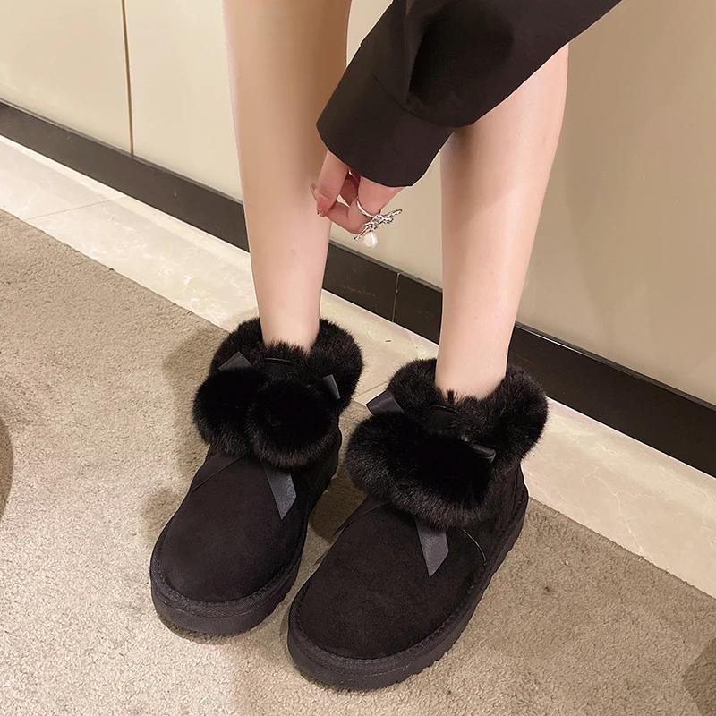 2024 Новая мода однотонные женские туфли меховые зимние сапоги зимние сапоги женские из натуральной шерсти теплые ботильоны женская обувь