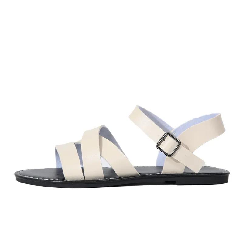 Лето 2024 года, хит продаж, женская обувь, однотонные женские сандалии с открытым носком, повседневные римские сандалии большого размера на низком каблуке с пряжкой