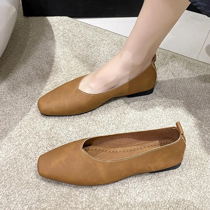 2024 Модные однотонные легкие туфли с квадратным носком на плоской подошве для женщин, весна и осень, с закрытым носком, женские туфли